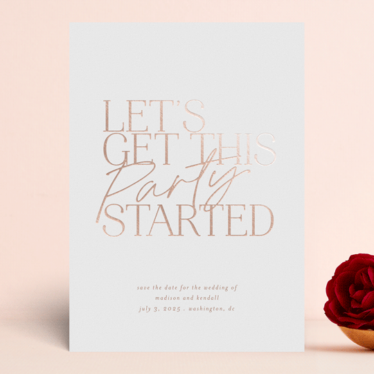 This amusing non-photo save the date card is popular. Let’s party save the dates card is unique and has many appealing aspects. The card’s well-made design and gorgeous design aspects are important selling points for a buyer. This card will make you happy on a special occasion such as a wedding.